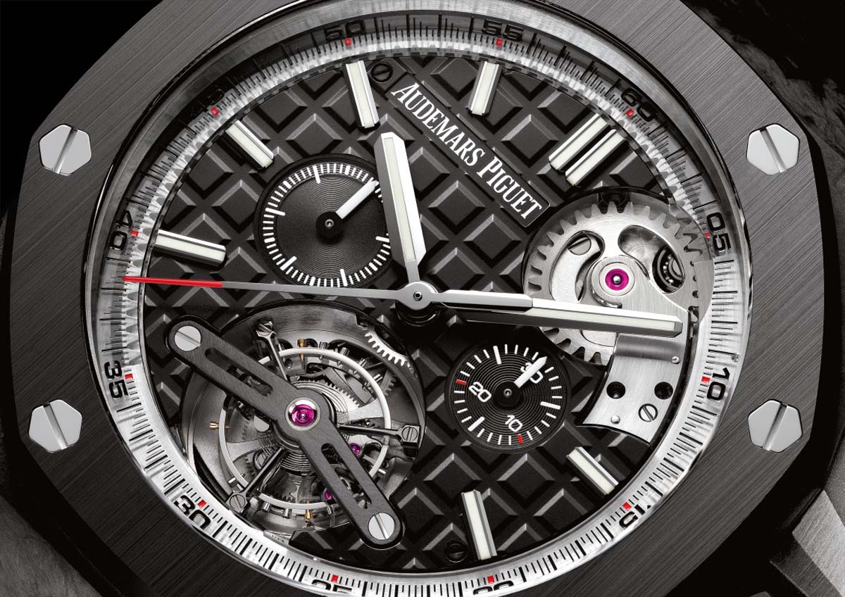 愛彼全新皇家橡樹離岸型陀飛輪計時碼錶,搭配最新的2897自動上鍊機芯。由335個零件組成的2897機芯在藍寶石水晶底蓋下一覽無遺,如同腕錶本身一樣精湛。此機芯蘊藏多個完全經人手倒角、拋光、斜切和經過裝飾處理的零件,營造出光影交疊的效果,堪為真正的微型機械藝術傑作。皇家橡樹離岸型自動上鍊陀飛輪計時碼錶:融合傳統製錶工藝和高科技思維的傑作。