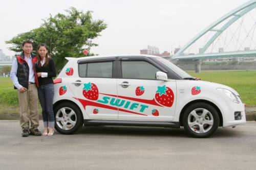 大家好,向各位好朋友介紹我的「草莓號」!會把Swift打扮成這樣,起因於我們都超愛草莓,因此不管是彩繪還是內裝部置,只要能變身草莓造型的通通都改頭換面,就連天線球甚至是輪胎氣嘴蓋都是草莓式樣。愛草莓成癡大概就像我們一樣了,每次開車時就像進入草莓夢幻王國,就連路人都很難不多看兩眼。