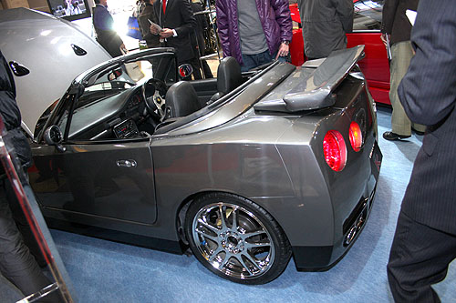 學校位於千葉縣算是Auto Salon在地協力的NATS日本自動車大學校,每年Auto Salon總是多部讓人讚嘆的創意改裝佳作,今年也不例外首先受賞的是一部以Suzuki Cappuccino Kcar為基礎,採用手工FRP進行R35 GT-R車頭/車尾外觀造型大改造的NATS GT-K,該車動力則沿用原車660c.c.渦輪引擎再經過中冷器升級與底盤懸吊/胎圈升級,當然它是不可能比照R35也裝上20吋胎圈的啦!