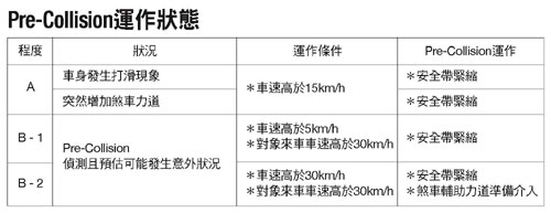 | 圖為Pre-Collision預警式防護系統,車前方的微波雷達可精準預測可能發生的危險,預先準備各項處理程序,將傷害減至最低。 |