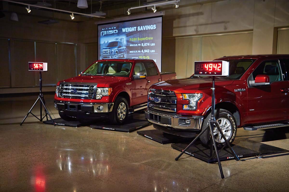 雖然高張力鋼材與鋁合金材料各擅勝場,但是愈來愈多量產車型開始大量使用鋁合金材料的確是不爭的事實!Ford先前已發表一款輕量化Mondeo概念車型:得益於鋁合金材料的增加,該款概念車的重量較普通車型降低25%,之後在2015年初底特律車展,則推出了具里程碑意義的2015年式F-150小貨卡車型:該車車身97%採用鋁材料(成為歷史上第一款鋁合金車身小貨卡),較之前同款鋼製車身的車型減重320公斤、燃油效率更提昇30%。F-150一直是Ford旗下的經典小貨卡,多年高踞美國市場十大暢銷車榜首,2014年更以超過76.3萬部的銷量佔據美國小貨卡市場40%市佔率。在全鋁合金車身F-150車型問世一個月之後,GM集團也證實將讓鋁材料多用在下一代小貨卡車型設計之內,Chrysler則於2014年5月份宣佈其較小型的Jeep車型Wrangler可能大量使用鋁材料。