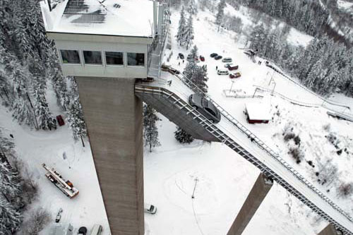 1986年、Rally比賽選手Harald Demuth就是在Pitkavuori滑雪跳台駕駛一部馬力輸出為136bhp、搭載第一代Quattro系統的紅色Audi 100 CS Quattro從坡底衝上塔頂,那支當時震驚全球車壇的廣告至今仍為許多資深Audi支持者所津津樂道!19年後的2005年,重約1.9噸、馬力輸出卻大了一倍不止(335 bhp)的Audi A6 4.2 Quattro再度重現了當時的輝煌,也成為汽車廣告界的經典。