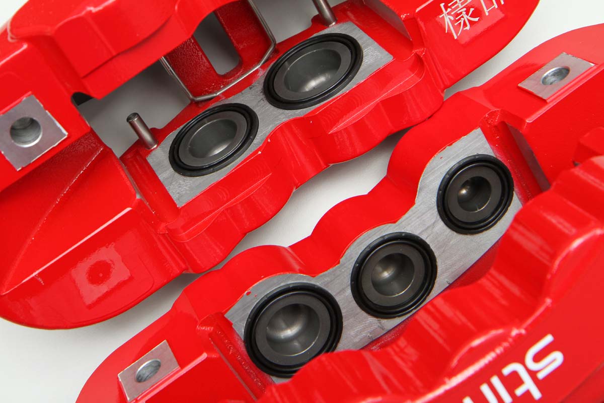 目前Stim四活塞卡鉗可對應直徑330/355mm的碟盤,Stim六活塞卡鉗則可對應直徑355/380mm的碟盤,想要以實惠價格買到值得信任的多活塞卡鉗組的車迷朋友們,不妨考慮看看。
