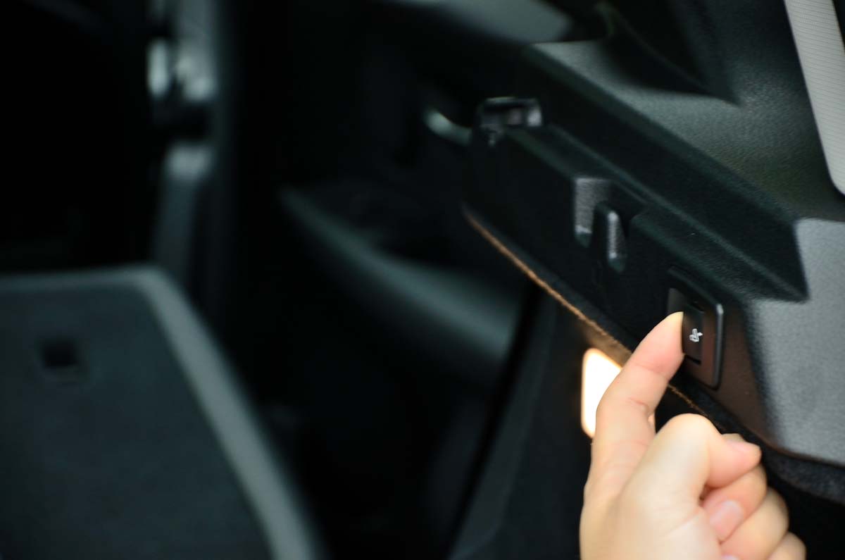 後行李廂兩側有椅背快速折收的控制按鈕,便於大型物品擺放並增加使用的便利性。