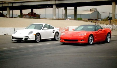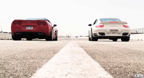 在觀看影片之前,先為大家分析一下這兩部重量級殺手的相關資料數據,來自德國的911 Turbo,採後置引擎四輪驅動的設計,車身重量1587公斤,擁有500匹、66.3kgm的最大馬力及扭力輸出,0-100km/h加速為3.0秒。而Corvette ZR1則是採後置引擎後輪驅動設計,車身重量1510公斤,最大馬力及扭力輸出分別為638匹、83.5kgm,0-100km/h加速為3.5秒。