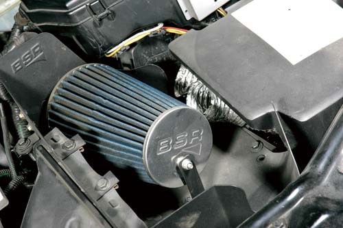 | Tuner不但改裝BSR的高流量香菇頭,並刻意從前氣壩牽入兩條管子,引導更多的冷空氣進入香菇頭中 |