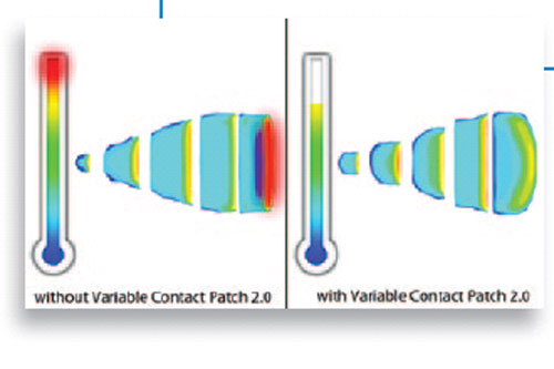 拜航空界與汽車界使用之最新數位模擬軟體之賜,壓力與溫度可以均勻分佈於輪胎的接地面。儘管接地面的形狀在過彎時會發生改變,但是橡膠接地面積的大小始終不變。