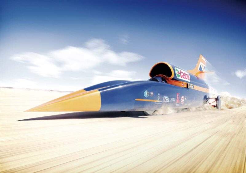 時速破千 超音速戰艦Bloodhound SSC自從汽車問世以來,挑戰極速一直是人類的夢想,目前地面最高極速是由Richard Noble帶領英國團隊所打造的「Thrust SSC」,在1997年創下763mph (約1227km/h)的紀錄,但狂還要更狂,他將進一步執行Bloodhound SSC計畫