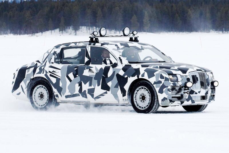迷一般的偽裝車或許是吉利?這部看來像是混合了Bentley跟Rolls-Royce的縮小版偽裝車實在讓人摸不清頭緒,再加上比Toyota更無厘頭的偽裝彩繪,當然它不可能是Bentley或是Rolls-Royce的新車,不過跟Volvo一前一後的出現