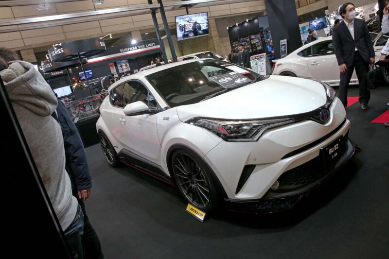 C-HR& Sienta改裝(7-4)還要多等一下下Blitz「電腦集團」每次展覽總是以白色車輛為主的BLITZ,這次會場內的C-HR也是相當有味道,首先選擇原廠搭配前中後小包的G-T版本作為主角,懸吊部分則是搭載上自家的DAMPER ZZ-R Spec避震器將車高降到極低,20吋大腳也正好填滿碩大的輪拱,全段高底可調搭配96段阻尼強度自由設定功能,另外更搭載了DSC系統來達到車內即可設定阻尼的功能,小編也在一次的報導中試駕過搭載DAMPER ZZ-R Spec的車輛,坑洞的處理相當優異,低速閥門