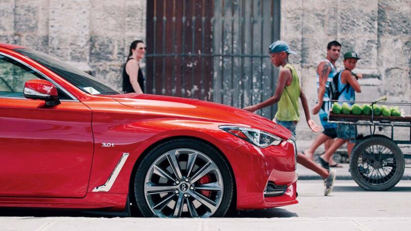 寫下歷史新頁 Q60登陸古巴如果你到古巴旅遊,一定會被各種造型奇特、色彩繽紛的老爺車吸引,這些30到50年代的老爺車,據估計還有超過10萬部之譜在古巴街頭奔馳,造就這不可思議光景的原因是,古巴革命後的社會改革,再加上美蘇冷戰之際,古巴傾向支持蘇