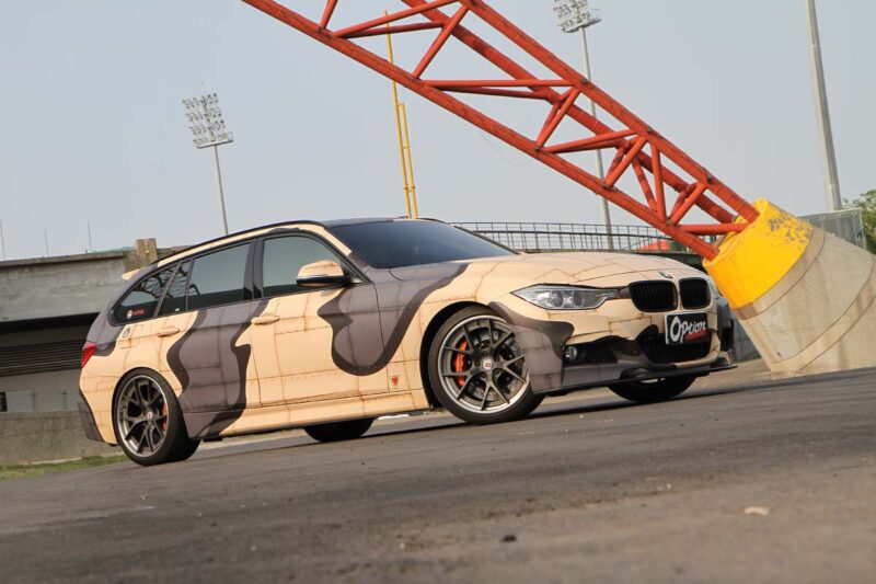迷彩風BMW F31沙漠風暴超吸睛在幾年前汽車貼膜尚未流行時,車主若想要改變車輛外觀塗裝,那只有將車輛送去進行烤漆一途,如果說是車輛已使用一段時間、漆面狀況不佳的話,還可以藉由重新烤漆來恢復新車般亮麗光