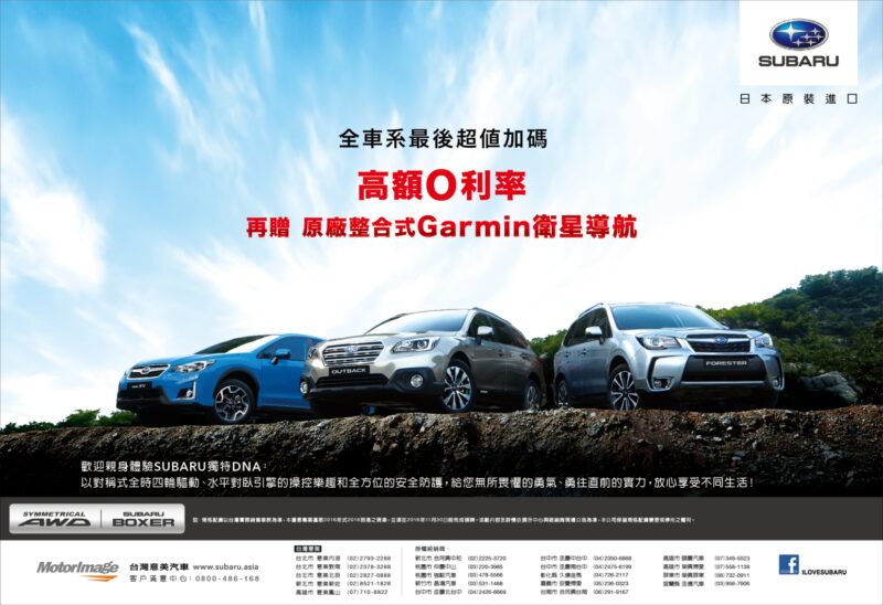 時序邁入2016年尾聲,SUBARU台灣意美汽車為了回饋廣大消費者的熱烈支持與肯定,即日起至11月底為止,隆重推出年終最後超值加碼購車方案,入主16年式到港全車系車款享高額零利率回饋,再贈原廠整合式Garmin衛星導航