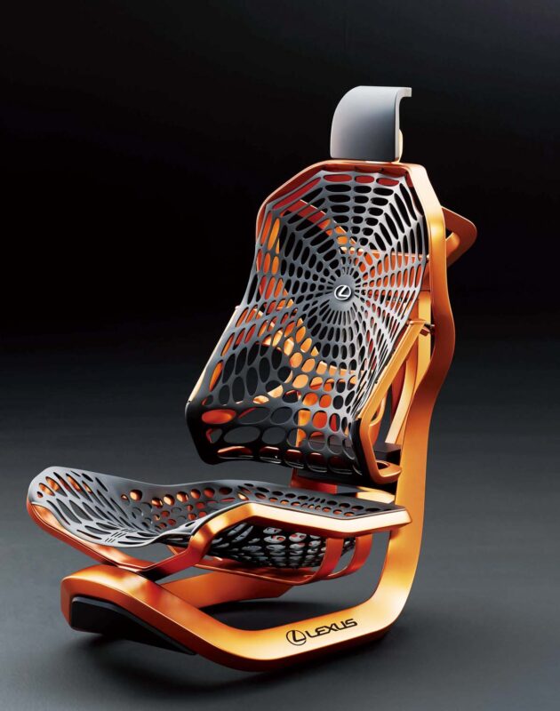 座椅重大突破Lexus Kinetic Seat Concept,概念座椅採用高剛性纖維在車展上各家車廠無不展出旗下最新車款,而Lexus除展出UX Concept概念車外,亦展出與車輛息息相關的Kinetic Seat Concept概念座椅。Kinetic Seat Concept概念座椅有著與一般座椅不大相同的造型,如蜘蛛網般的設計帶來強烈的未來概念,但Kinetic Seat Concept概念座
