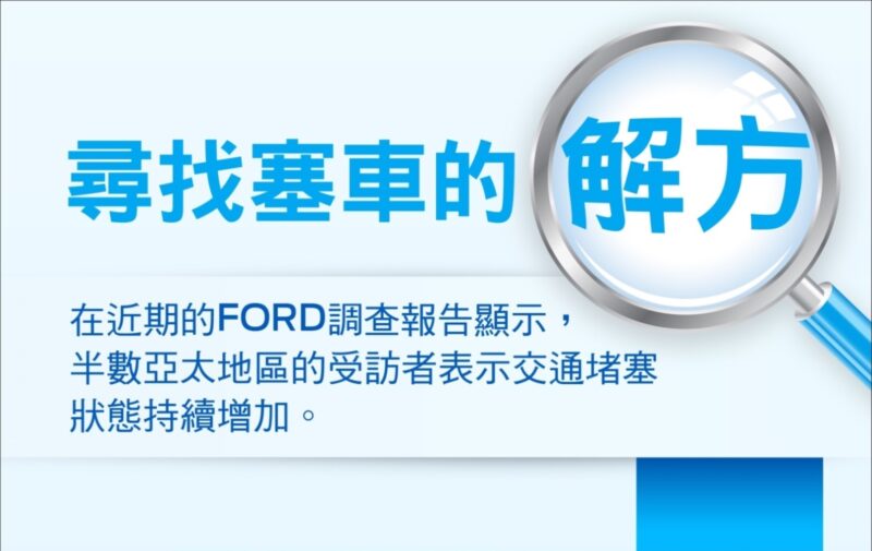 FORD針對超過12,000名消費者進行區域性問卷調查研究,以評估其對交通堵塞的意見和潛在的行動性解決方案。亞太區有一半的受訪者認為交通狀況正在持續惡化當中,只有18%的受訪者認為交通在過去一年有所改善。