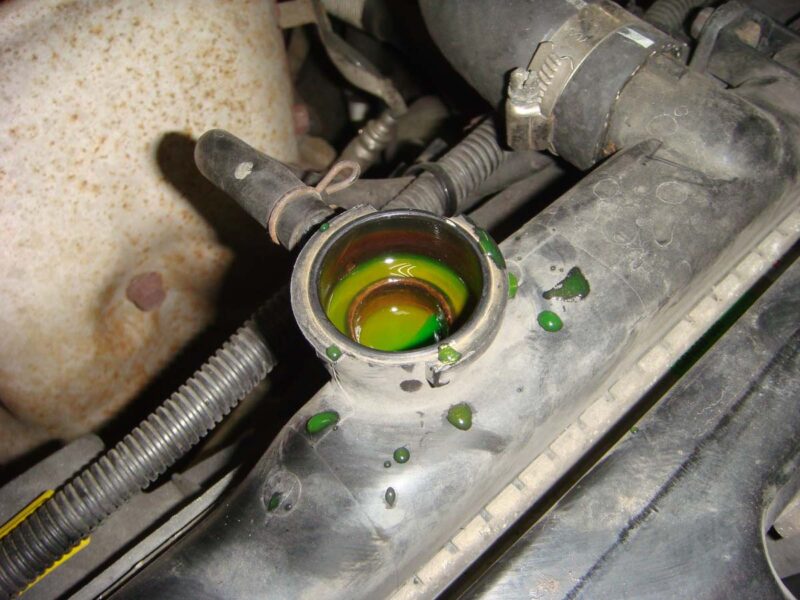 水箱QA特輯 路面發現綠色(或是藍色/紅色)液體?以乙二醇為主要成分的水箱精,其實是無色、無味的,為了在水箱精有滲漏時能夠方便觀察,業者會添加顏料使其有顏色,常見的就是綠色、藍色或紅色;漏水初期都不會太嚴重,通常只有一點點,