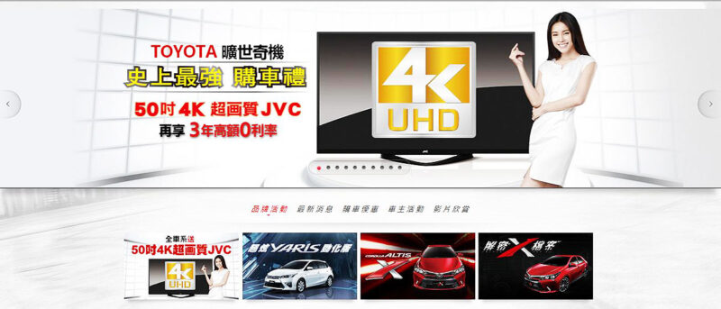 TOYOTA夏季大競賽零利率優惠伺候,交車再送JVC 50吋4K大電視,又稱得上史上最大手筆,完全展現2個月銷售2.8萬輛目標必達的決心。…
