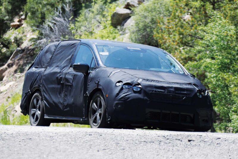 大肚老爹Honda Odyssey Facelift觀察小改款Odyssey,從嚴密包裹的偽裝中仍可發現頭尾燈造型、車頭高度與現行有所改變,原先從頭燈向車身延伸至車尾的鍍鉻飾條也一併取消。車頭預計極可能採用Accord的飛翼設計。動力上除了3.5升V6之外,Hybrid選