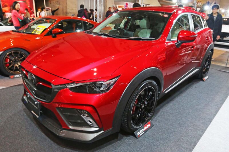 端正感營造Mazda CX-3去年底以跨界休旅登陸台灣的CX-3,憑藉著Mazda全新的家族化年輕特色獲得好評,AutoExe攤位內這輛紅色車型,透過空力套件及鋁圈的更換,不過份的端正感是這次訴求的重