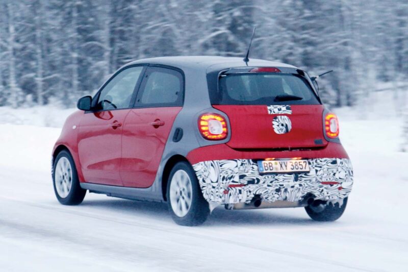 口袋怪獸Smart Brabus Fortwo & Forfour這回一次捕捉到Forwtwo與Forfour兩種車款,但從車尾下方雙邊單出尾管與較寬的後輪胎寬,仍透露出這兩款測試車的車頭將掛上Brabus的廠徽。首先Fortwo的部分,從進氣壩、燻黑