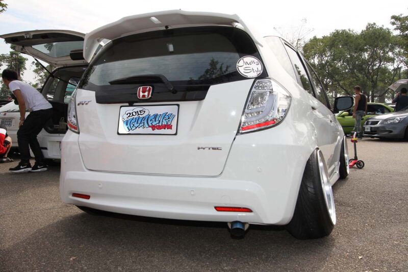 高人氣不紅很難 Hellaflush Honda說到海拉風改法,萬年不敗的改裝車-Honda Civic EG/EK竟也是熱門車款,會這樣除了改裝套件多以外,採用四輪獨立雙A臂設計的底盤結構,更有利於外八定位角度的設定應該也是主因,當天這兩款車加起來大約就來了快30-40部,