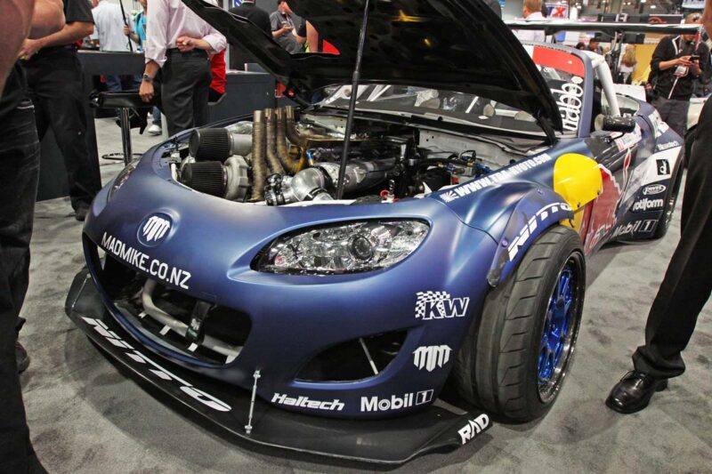 瘋狂轉子瘋到骨 Red Bull Mazda MX-5MX-5這輛小車塞入大引擎,來打造成怪獸的案例相當多,不過紐西蘭甩尾車手Mad Mikes這輛MX-5可說是達到前人未聞的詭異境界,這輛MX-5就是製作來取代原本自然進氣4轉子的「MADBUL」RX-7甩尾戰車