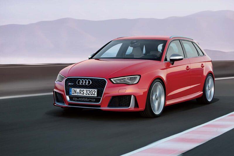 勁裝性能旗艦Audi RS3 SportbackA3車系中的性能旗艦RS3 Sportback的正式定裝照已於去年年底在官網上公佈,很快的Audi也將在日內瓦讓實車出現在大家眼前;全新的RS3 Sportback在保持A3車系大致特徵下,車身細節