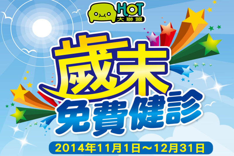 HOT保修大聯盟即日起至2014/12/31止(不含星期日與國定假日),特別推出「歲末免費健診」活動,提供引擎、煞車、底盤、輪胎、燈光等21項進行全方位健檢,另外活動期間實施定期保養即享有零件、油品9折優惠…