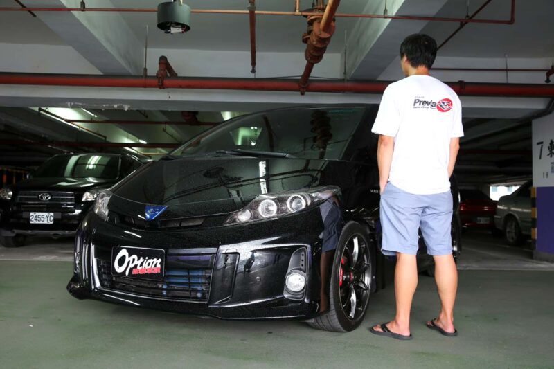 Previa俱樂部-山道玩家 Toyota Previa 3.5L受到日本改裝的影響,Previa的改裝方式較偏向VIP風格,但是這位車主卻想呈現運動風格。日規Estima Aeras鈑件、自製光圈頭燈、日規透明尾燈、Tein SA避震器等,其實改裝方式與其它Previa差不多,不過黑
