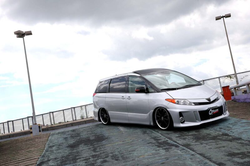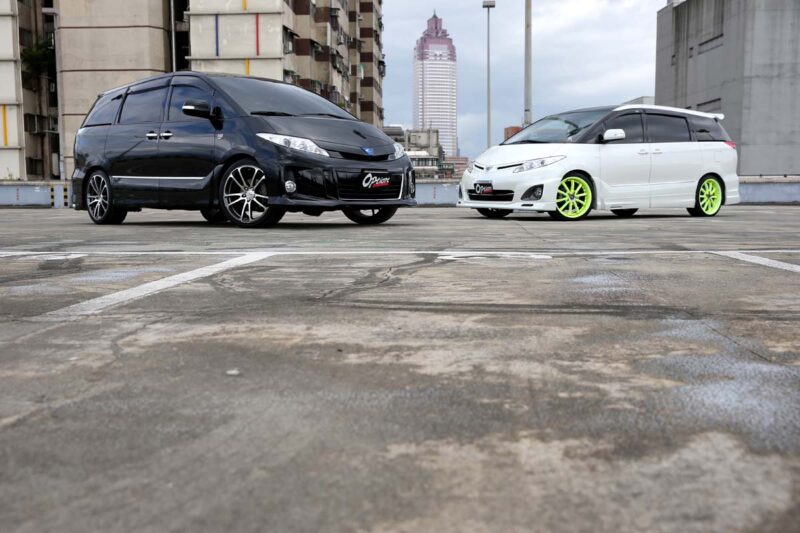 Previa俱樂部-山道玩家 Toyota Previa 3.5L受到日本改裝的影響,Previa的改裝方式較偏向VIP風格,但是這位車主卻想呈現運動風格。日規Estima Aeras鈑件、自製光圈頭燈、日規透明尾燈、Tein SA避震器等,其實改裝方式與其它Previa差不多,不過黑