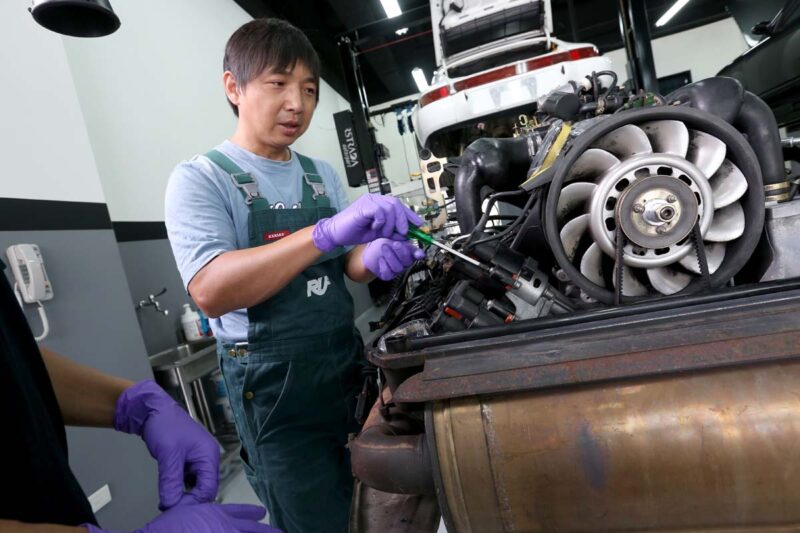 車底下的工匠人生 911專家Ruf進修日提到Porsche 911,人們通常會聯想到後頭那具水平六缸引擎與後置後驅RR架構,尤其是氣冷引擎世代的老911(930/964/993),特有的運轉聲浪及RR後置後驅的狂野性格,一直為車迷所津津樂道,近年更因老車風氣盛行,氣冷911