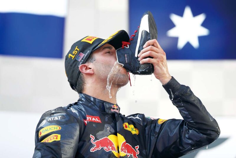 彷彿沒完沒了的「Shoey」,這個來自澳洲賽車圈的梗,今年下半季竟然在F1成為話題、而且有愈演愈烈的趨勢:德國站Daniel Ricciardo在頒獎台上首先喝,比利時站讓同胞前輩Mark Webber也喝,馬來西亞站竟然連領隊Christian Horner、隊友M