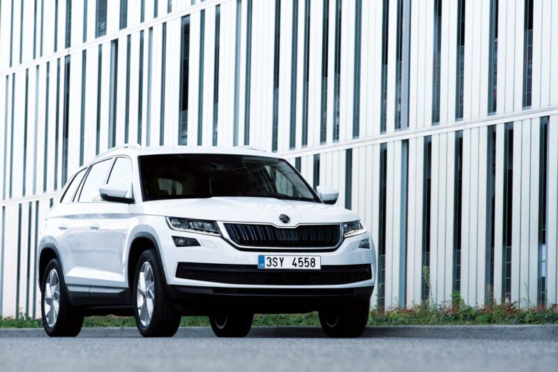 Kodiaq延續新世代Superb的設計樣貌,採用3D雕塑水箱護罩搭配內嵌LED日行燈的長方形頭燈組增添運動氣息。Kodiaq擁有1.4 TSI與2.0 TSI兩種輸出規格,及同樣分兩種動力規格的2.0 TDI供不同消費者選擇。車室標準為五人座,第三排