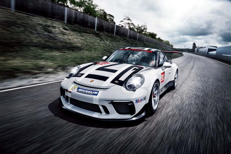 911 GT3 Cup外觀導入與新世代911造型元素,LED日行燈與車尾設計皆讓911 GT3 Cup有著與市售車相似的樣貌,但高聳寬大的尾翼與保險桿造型則彰顯出賽車氣勢與身分。本次911 GT3 Cup最大變革為動力系統,不過911 GT3 Cup並未