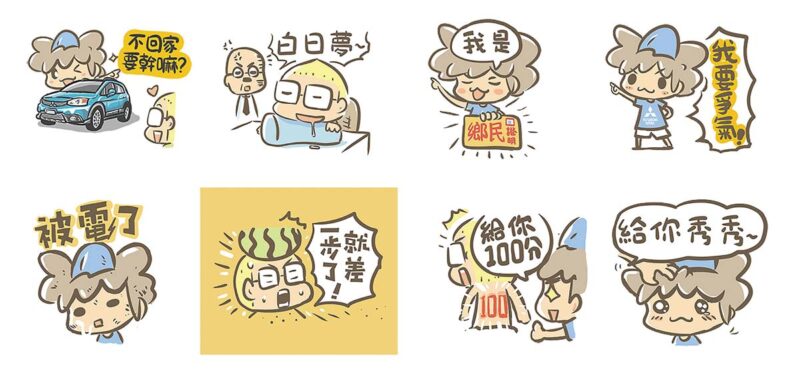 中華三菱與人氣插畫家海豚男跨界合作,推出「中華三菱青春還鄉、一起挺勵青」Line動態貼圖共八款,即日起開放無料下載。這款貼圖是以關懷偏鄉、鼓勵青年返鄉實現理想為創作理念,其中海豚男身穿藍色上衣,頭上頂著招牌海豚鰭,讓人直
