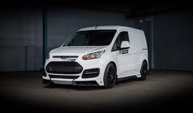 這次由和Ford WRC合作關係良好的M-sport,以及向來以夢幻奢華汽車改裝的Carlex Design攜手打造的Ford transit connect M-sport,在外觀改裝了前保桿總成、拉力運動風寬體輪拱、車身側裙、後尾門擾流板、後下分流器、雙出排氣尾管,讓這輛乖乖牌商務車搖身變