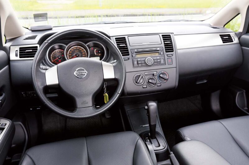 即將於6月8日迎接10歲生日的Tiida,也是入門級距中最資深的車款。歷經一段不短的銷售期間,為車室帶來彷彿時光中停格般的懷舊風格。這未必是件壞事,畢竟當同世代產品都搶著將霧銀飾板、亮面烤漆、鍍鉻飾件當作內裝素材的時候,樸實