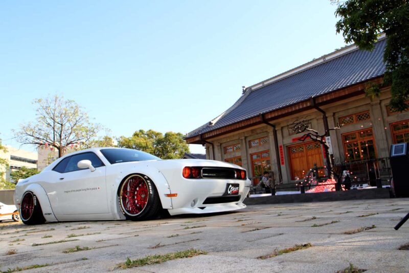 Dodge Challenger相較於Ford Mustang與Chevrolet Camaro,筆者認為這部車是美國三大平民跑車中,最有老美國車的味道與線條,也或許是因為高腰線的緣故,改上Liberty Walk寬體套件後,更顯得雄壯