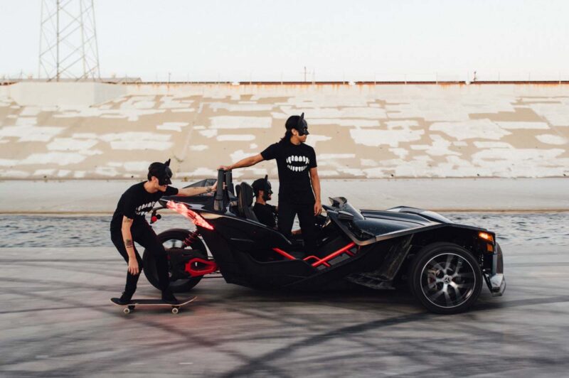 知名的賽車選手,美國版「Top Gear」社員一職的Tanner Foust,公開了Ken Block的金卡納系列的影片。Tanner Foust駕駛的這輛由Polaris社製作的3輪車「Slingshot」,原廠173hp的標準最大出力,再