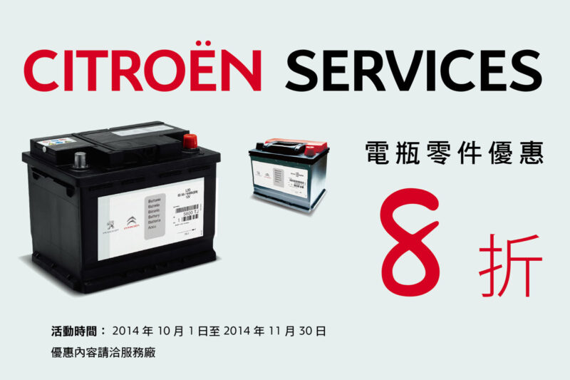 2014年CITROËN SERVICES 原廠零件優惠活動感謝車主們熱情支持,活動即將進入尾聲,CITROËN總代理 寶嘉聯合推出第七波精選 ─ 電瓶特惠…
