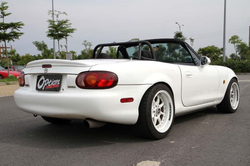 後驅操控樂趣滿分 看完了兩位MX-5資深玩家對愛車改裝的想法分享後,接下來我們換個口味,轉向動力改裝實車進行介紹,這次受訪的八部車中,共有兩部MX-5進行了渦輪化改裝,且剛好一部是一代1.6L車款、另一部是二代1.8L