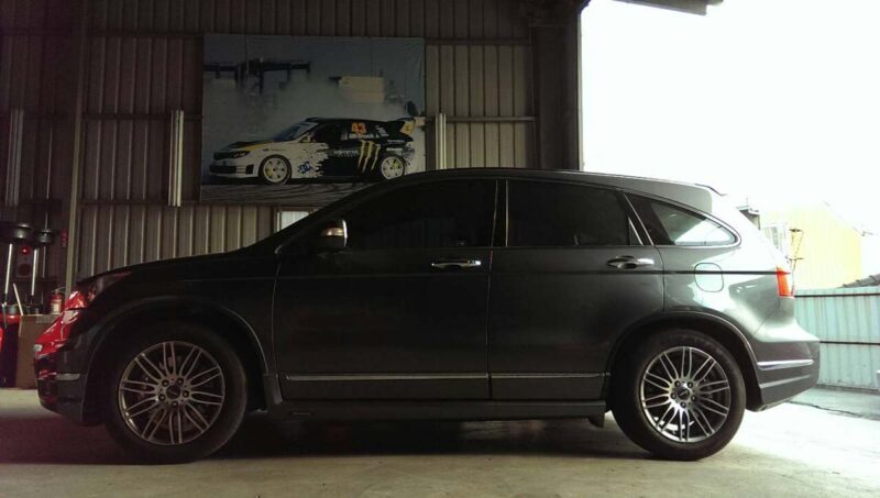 收到Option寄來的部品之後,緊接著馬上請友人(福濱自動車)為愛車CR-V III進行改裝動作並且搭配KYB減震筒及重新定位,前camber設定在-0.5度,後camber用仰角調整器設定在-1度,toein設定在+0.05幾乎原廠以及