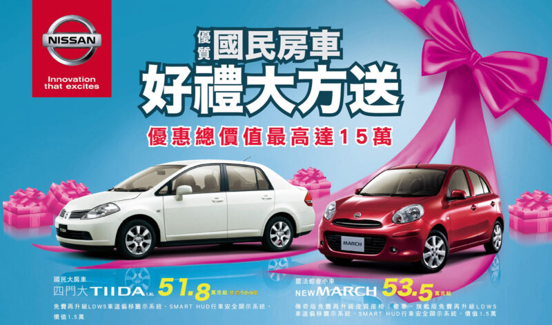 裕隆日產汽車為了讓消費者輕鬆擁有NISSAN國民房車,特別貼心推出「NISSAN優質國民房車好禮大方送」活動(註1),自即日起至10月底止入主四門大TIIDA、NEW MARCH即享有多重優惠好禮…