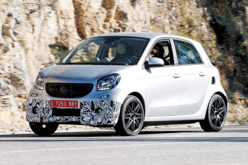 馬力加3成 Brabus Forfour*專注M.Benz車款的改裝車廠Brabus,在全新世代Smart Forfour推出後,日前已在西班牙發現一部極可能高掛Brabus廠徽Forfour的測試蹤跡。從偽裝部位可以看出車頭車尾保險桿都