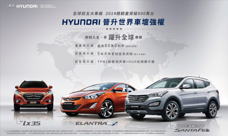 為慶祝此一光榮成果,本月份HYUNDAI汽車特別規劃了[躍升全球專案]來回饋廣大消費者,除了原有各主力車款購車優惠內容持續推行外,包含All New Santa Fe購車可享80萬元高額0利率(限特仕車款)…
