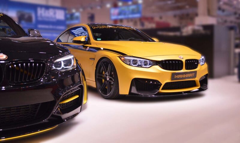 黃色驚喜 Manhart Racing MH4 550 (BMW M4)Manhart Racing為了Essen Motor Show 費時6個月的時間,全新打造出這輛名為MH4 550的BMW M4終於首發亮相,正如其名擁有550hp的最大馬力及83.67kgm的驚人峰值扭力,極速來到340km/h,而搭載這具3.0升直列六缸雙渦輪引擎,果然創造出