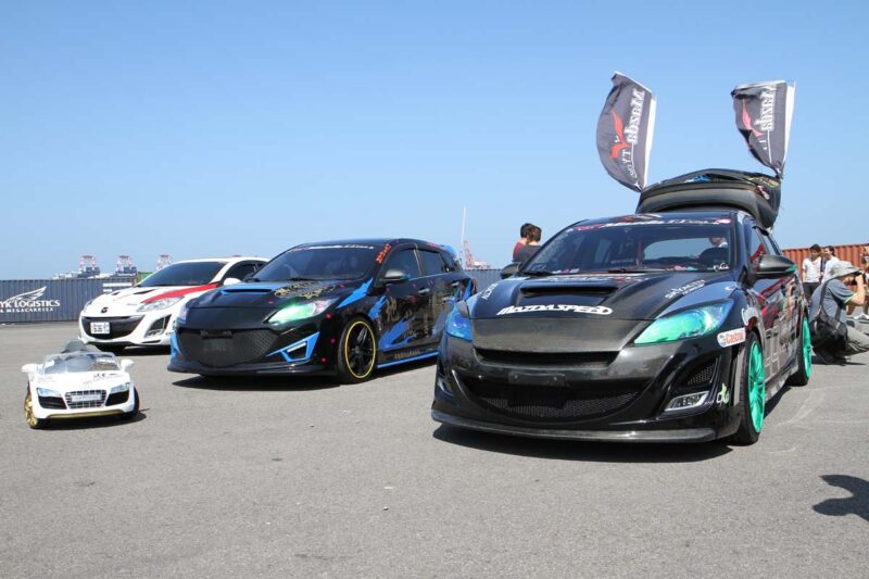 AXELA Club Mazda十周年慶 千台Mazda 3齊聚台中港由AXELA Club Mazda舉辦的一年一度Mazda 3車主年度聚會盛事,當天總計有超過900輛各代Mazda3與1800位車友們湧進台中港參與活動,所有Mazda3依黑、白、紅等顏色分區排列,場面壯觀。活動中最亮眼的莫過於由台