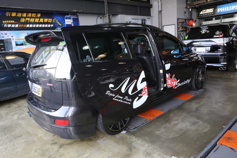 Mazda5 好爸爸的改裝話-Part 1. 始於轎式休旅說到轎式休旅車,Mazda Premacy算是開山鼻祖,使用房車底盤、卻有Van兩廂車型的空間,同時擁有了操控性、停車便利性與乘載空間可靈活運用的優點,而轎式休旅車改裝之後的效果也有別於其它車型。改名為Mazda5之後,後座滑門設計是許多車