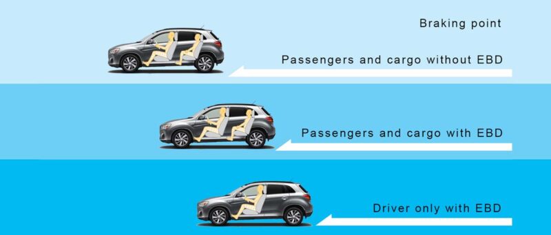 【煞車輔助科技】EBD自動調節 四個輪子給出不同的煞車力道一般的煞車系統都會透過總泵平均分配煞車力給四個輪子,在一般狀況下當然沒什麼問題。但在摩擦係數落差大的路面下,或是激烈操駕中所發生的車子荷重轉移,每條輪胎對路面的抓地力不斷的變化,需