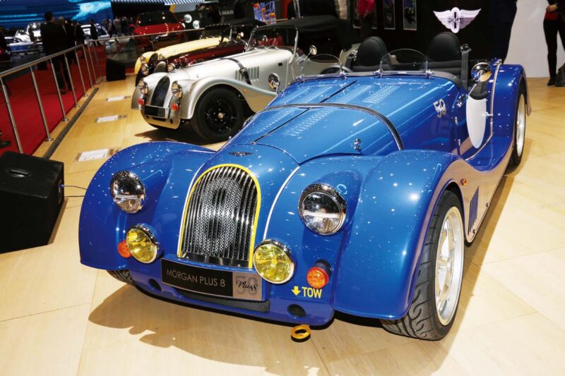 Morgan Plus 8五十週年紀念車Morgan在這次車展中出人意料地推出了這部Plus 8 五十週年紀念車,事實上這部車從1968年推出,到2004年時已經停產,又隔了十多年才推出紀念版,並且限量50部。新車上的動力來源是BMW 4.8升V8引